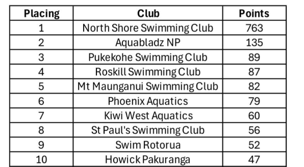 2nd Overall club points at the 2026 NZ Open Water Swimming Championships.